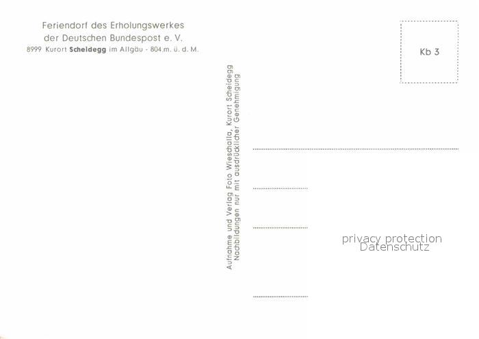 72752946 Scheidegg Allgaeu Feriendorf Erholungswerk Deutsche Bundespost postalisch nicht gelaufen Erhaltung siehe scans [KathaD81] KatCode: 11110009776125