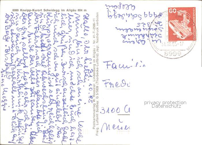 71909619 alte Postkarte Scheidegg Allgaeu Fliegeraufnahme postalisch gelaufen Erhaltung siehe scans KatCode: 11110009776125