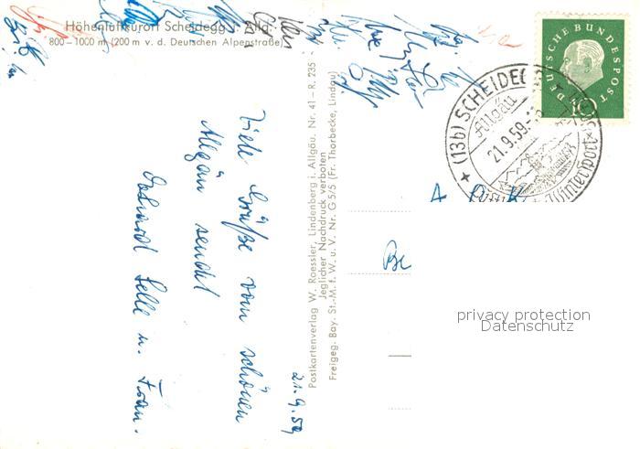 73090942 alte Postkarte Scheidegg Allgaeu Fliegeraufnahme postalisch gelaufen Erhaltung siehe scans [KathaD81] KatCode: 11110009776125