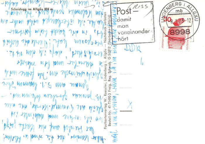 73878961 alte Postkarte Scheidegg Allgaeu Fliegeraufnahme postalisch gelaufen Erhaltung siehe scans [WerneD78] KatCode: 11110009776125