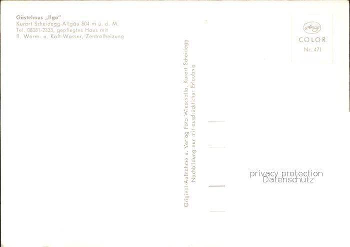 71909857 Scheidegg Allgaeu Gaestehaus Ilga postalisch nicht gelaufen Erhaltung siehe scans KatCode: 11110009776125