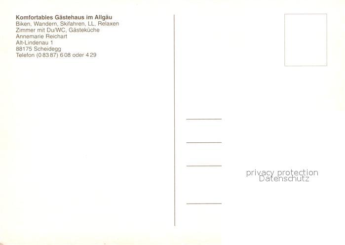 72961249 Scheidegg Allgaeu Gaestehaus Reichart Zimmer Terrasse postalisch nicht gelaufen Erhaltung siehe scans [WerneD78] KatCode: 11110009776125