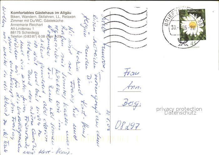 72448677 alte Postkarte Scheidegg Allgaeu Gaestehaus Reichart postalisch gelaufen Erhaltung siehe scans KatCode: 11110009776125