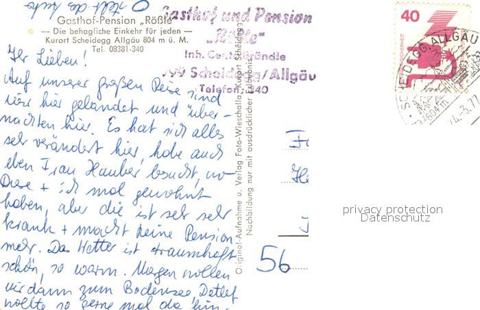 73035629 alte Postkarte Scheidegg Allgaeu Gasthaus Pension Roessle postalisch gelaufen Erhaltung siehe scans [KathaD81] KatCode: 11110009776125