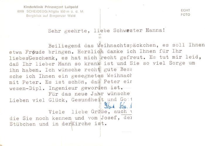 73883506 Scheidegg Allgaeu Kinderklinik Prinzregent Luitpold Bergblick auf Bregenzerwald postalisch nicht gelaufen Erhaltung siehe scans [WerneD78] KatCode: 11110009776125