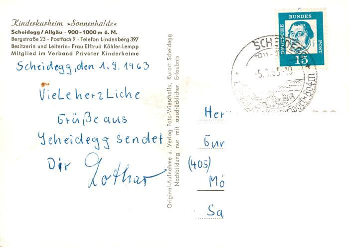73898279 alte Postkarte Scheidegg Allgaeu Kinderkurheim Sonnenhalde Panorama postalisch gelaufen Erhaltung siehe scans [WerneD78] KatCode: 11110009776125