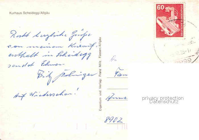 72714849 alte Postkarte Scheidegg Allgaeu Kurhaus Scheidegg postalisch gelaufen Erhaltung siehe scans [FriedD77] KatCode: 11110009776125