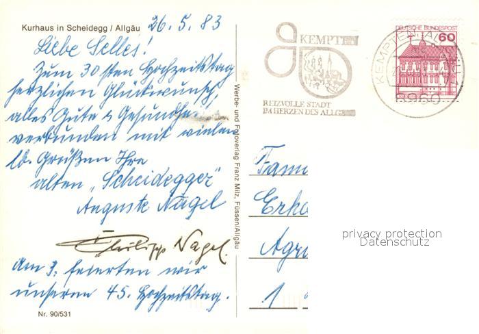 73093083 alte Postkarte Scheidegg Allgaeu Kurhaus postalisch gelaufen Erhaltung siehe scans [KathaD81] KatCode: 11110009776125