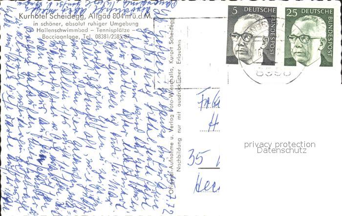 72463567 alte Postkarte Scheidegg Allgaeu Kurhotel Scheidegg postalisch gelaufen Erhaltung siehe scans KatCode: 11110009776125
