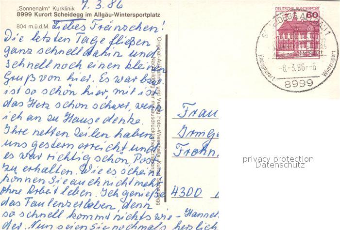 73333493 alte Postkarte Scheidegg Allgaeu Kurklinik Sonnenalm Schwimmbad postalisch gelaufen Erhaltung siehe scans [LiesaD40] KatCode: 11110009776125