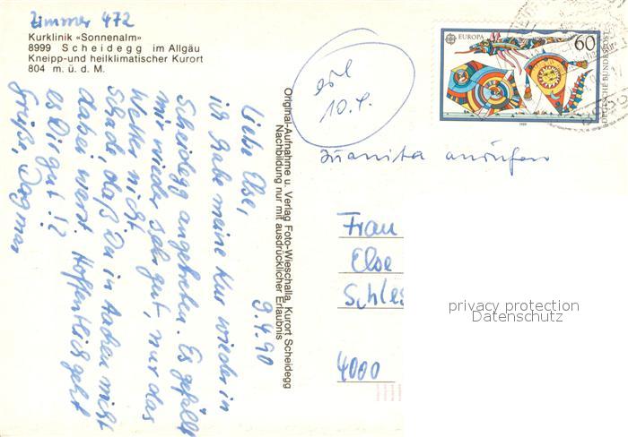 73657089 alte Postkarte Scheidegg Allgaeu Kurklinik Sonnenalm postalisch gelaufen Erhaltung siehe scans [FriedD77] KatCode: 11110009776125