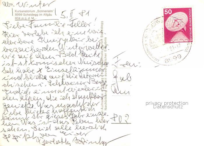 72650598 alte Postkarte Scheidegg Allgaeu Kursanatorium Sonnenalm postalisch gelaufen Erhaltung siehe scans [LiesaD40] KatCode: 11110009776125