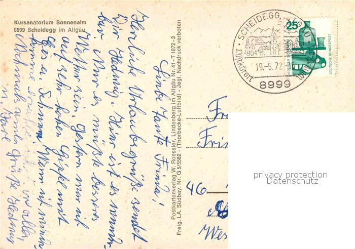 72753987 alte Postkarte Scheidegg Allgaeu Kursanatorium Sonnenalm Alpenkette Fliegeraufnahme postalisch gelaufen Erhaltung siehe scans [FriedD77] KatCode: 11110009776125