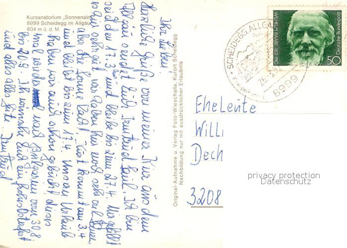73091491 alte Postkarte Scheidegg Allgaeu Kursanatorum Sonnenalm Winter postalisch gelaufen Erhaltung siehe scans [KathaD81] KatCode: 11110009776125