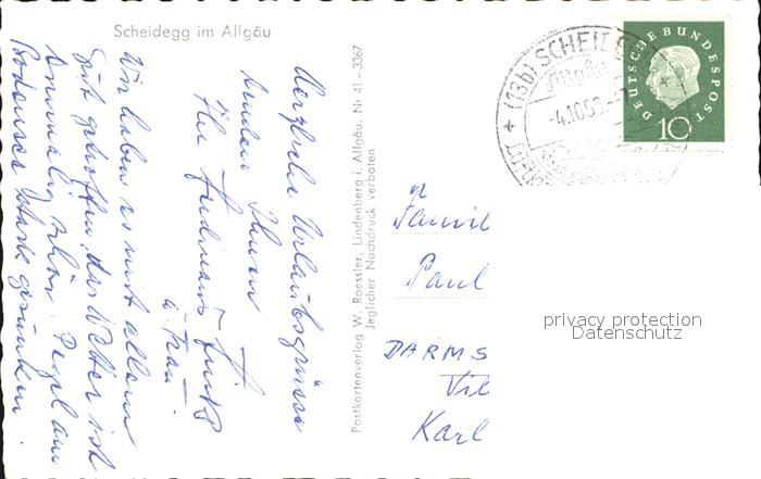 72430759 alte Postkarte Scheidegg Allgaeu Panorama postalisch gelaufen Erhaltung siehe scans KatCode: 11110009776125