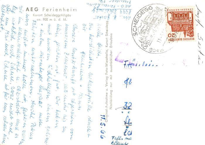 73883316 alte Postkarte Scheidegg Allgaeu Panorama AEG Ferienheim Gastraum postalisch gelaufen Erhaltung siehe scans [WerneD78] KatCode: 11110009776125