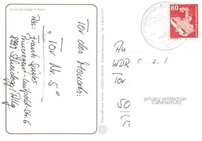 72765285 alte Postkarte Scheidegg Allgaeu Panorama Kurort Alpen postalisch gelaufen Erhaltung siehe scans [FriedD77] KatCode: 11110009776125