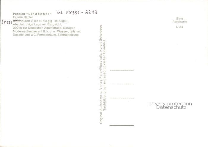 72284945 Scheidegg Allgaeu Pension Lindenhof postalisch nicht gelaufen Erhaltung siehe scans KatCode: 11110009776125