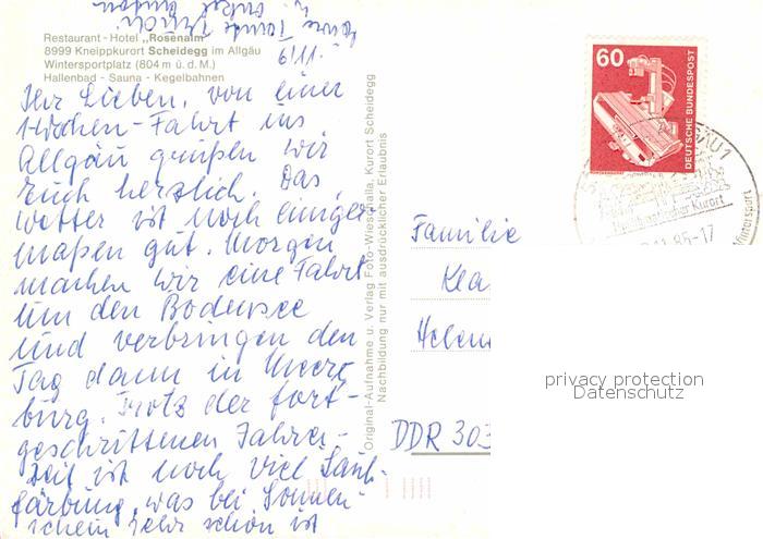 72723940 alte Postkarte Scheidegg Allgaeu Restaurant Hotel Rosenalm postalisch gelaufen Erhaltung siehe scans [LiesaD40] KatCode: 11110009776125