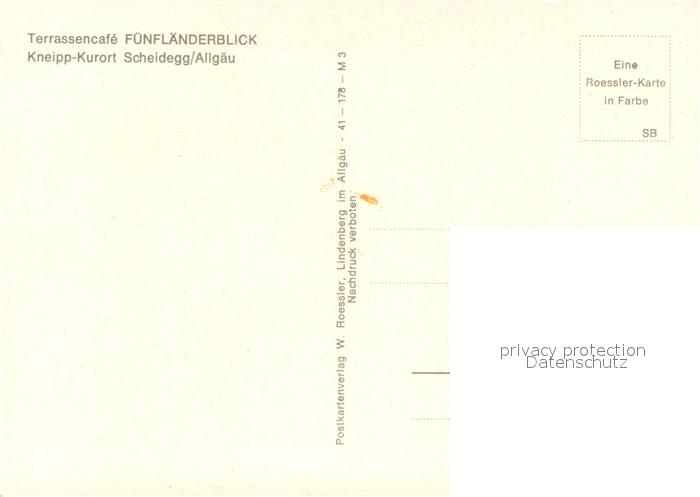 73615799 Scheidegg Allgaeu Terrassencafe Fuenflaenderblick Panorama Gaststube postalisch nicht gelaufen Erhaltung siehe scans [WerneD78] KatCode: 11110009776125