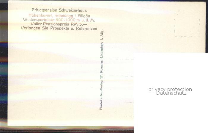 72146747 Scheidegg Allgaeu Waldsee Schwaene Pension Schweizerhaus postalisch nicht gelaufen Erhaltung siehe scans KatCode: 11110009776125