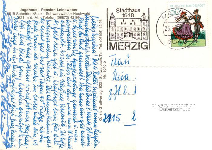 73866297 alte Postkarte Scheiden Fliegeraufnahme Jagdhaus Pension Leineweber Garten Liegeterrasse postalisch gelaufen Erhaltung siehe scans [WerneD78] KatCode: 11110010042112