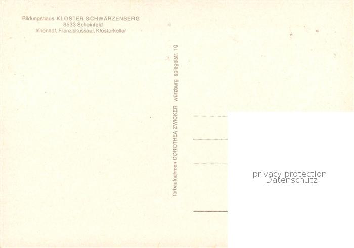 73196006 Scheinfeld Kloster Schwarzenberg Innenhof Franziskussaal Klosterkeller postalisch nicht gelaufen Erhaltung siehe scans [KathaD81] KatCode: 11110009575161