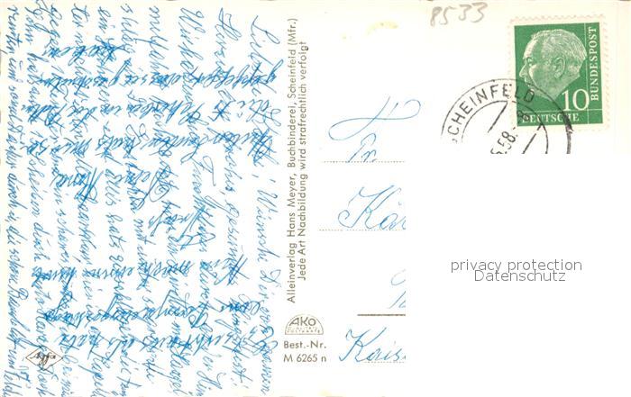 43346271 alte Postkarte Scheinfeld Panorama Schloss Kirche postalisch gelaufen Erhaltung siehe scans [KathaD81] KatCode: 11110009575161