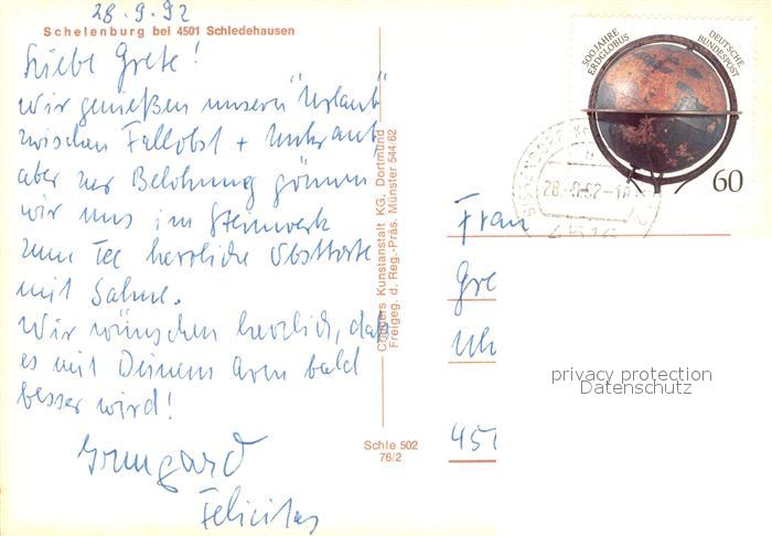 73688729 alte Postkarte Schelenburg Osnabrueck Schloss postalisch gelaufen Erhaltung siehe scans [FriedD77] KatCode: 11110003459012