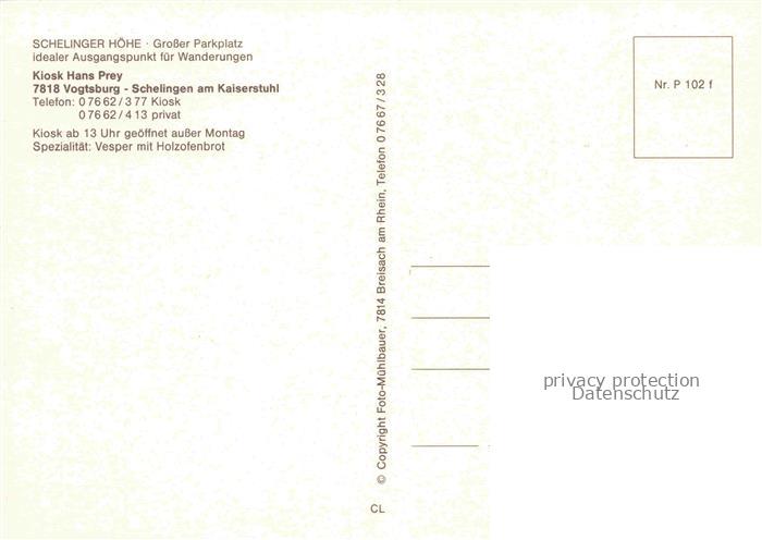 74023998 Schelingen Vogtsburg Kaiserstuhl Schelinger Hoehe Kiosk Hans Prey Panorama Freiterrasse postalisch nicht gelaufen Erhaltung siehe scans [WerneD78] KatCode: 11110008315133