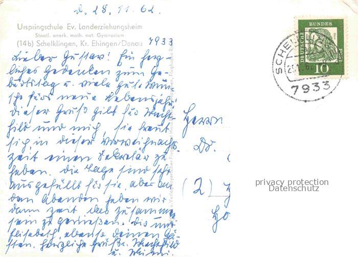 74152203 alte Postkarte Schelklingen Urspringschule Ev Landeserziehungsheim Fliegeraufnahme postalisch gelaufen Erhaltung siehe scans [WerneD78] KatCode: 11110008425108