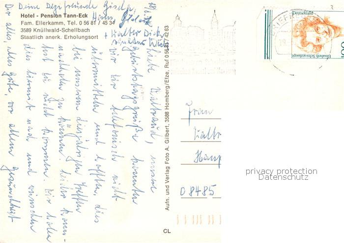 73717231 alte Postkarte Schellbach Knuellwald Hotel Pension Tann Eck Gastraeume postalisch gelaufen Erhaltung siehe scans [WerneD78] KatCode: 11110006634011