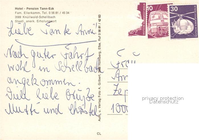 73659843 Schellbach Knuellwald Hotel Pension Tann-Eck Restaurant Kamin postalisch nicht gelaufen Erhaltung siehe scans [FriedD77] KatCode: 11110006634011
