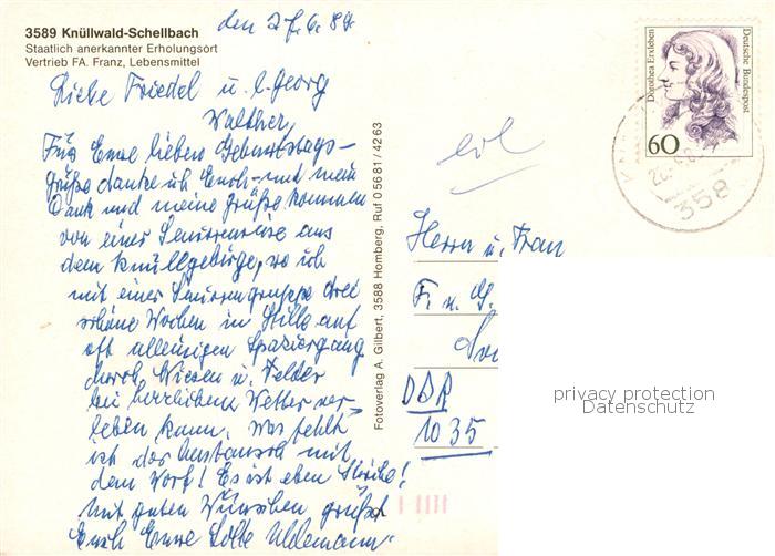 73874001 alte Postkarte Schellbach Knuellwald Kapelle Fachwerkhaus Wildfuetterung Panorama postalisch gelaufen Erhaltung siehe scans [WerneD78] KatCode: 11110006634011