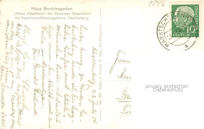 43495897 alte Postkarte Schellenberg Marktschellenberg Haus Berchtesgaden Neues Gaestehaus Alpen postalisch gelaufen Erhaltung siehe scans [FriedD77] KatCode: 11110009172129