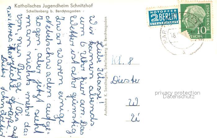 73160080 alte Postkarte Schellenberg Marktschellenberg Jugendheim Schnitzhof postalisch gelaufen Erhaltung siehe scans [LiesaD40] KatCode: 11110009172129