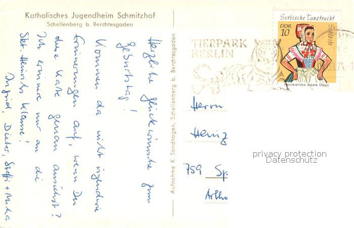 73641374 alte Postkarte Schellenberg Marktschellenberg Katholisches Jugendheim Schmitzhof Winterlandschaft postalisch gelaufen Erhaltung siehe scans [FriedD77] KatCode: 11110009172129