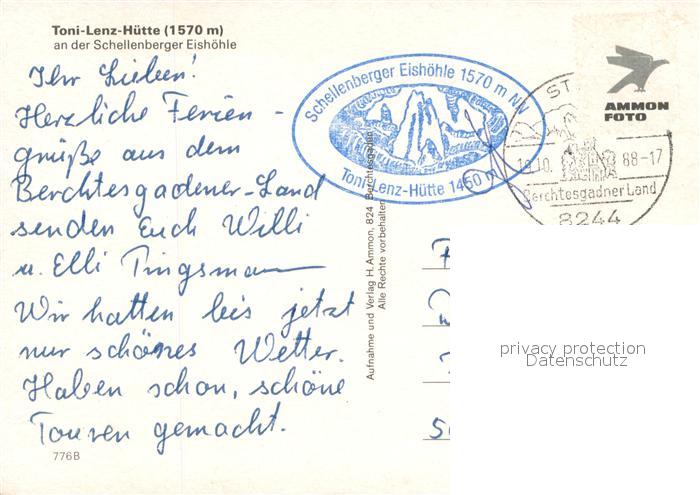 73704090 alte Postkarte Schellenberg Marktschellenberg Toni Lenz Huette an der Schellenberger Eishoehle postalisch gelaufen Erhaltung siehe scans [FriedD77] KatCode: 11110009172129