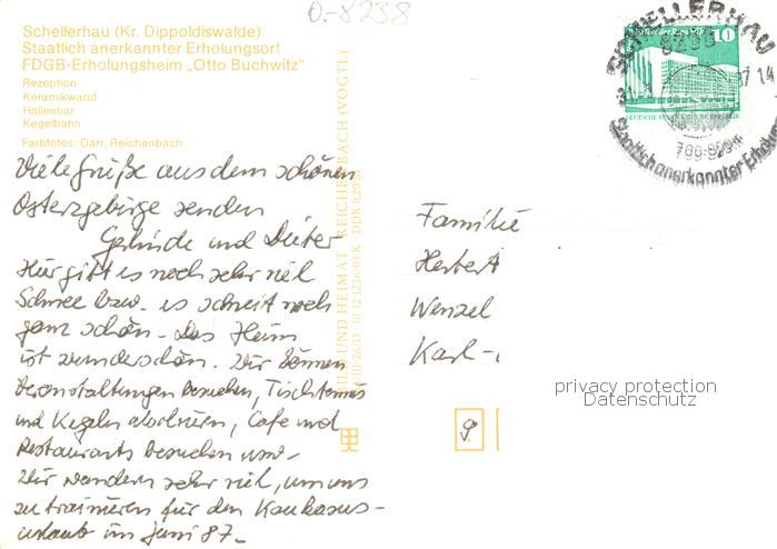 73867881 alte Postkarte Schellerhau FDGB Erholungsheim Otto Buchwitz Rezeption Keramikwan Hallenbar Kegelbahn postalisch gelaufen Erhaltung siehe scans [WerneD78] KatCode: 11110014290010