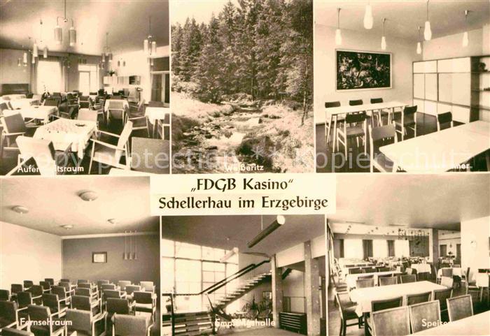 72676207 alte Postkarte Schellerhau FDGB Kasino Innenansichten Weisseritz postalisch gelaufen Erhaltung siehe scans [FriedD77] KatCode: 11110014290010