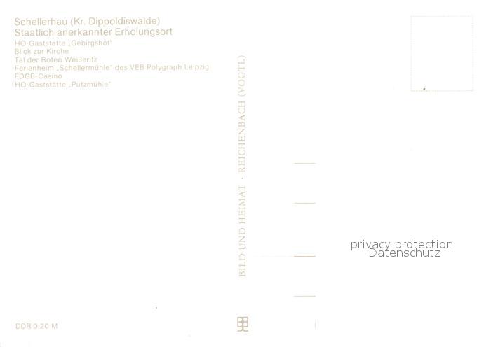 73305291 Schellerhau HO Gaststaette Gebirgshof Kirche Tal der Roten Weisseritz Ferienheim Schellermuehle FDGB Casino HO Gaststaette Putzmuehle postalisch nicht gelaufen Erhaltung siehe scans [FriedD77] KatCode: 11110014290010
