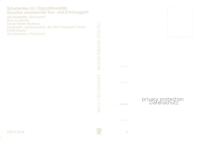 73302450 Schellerhau HO Gaststaette Kirche Tal der Roten Weisseritz Ferienheim Schellermuehle FDGB Casino HO Gaststaette Putzmuehle postalisch nicht gelaufen Erhaltung siehe scans [FriedD77] KatCode: 11110014290010