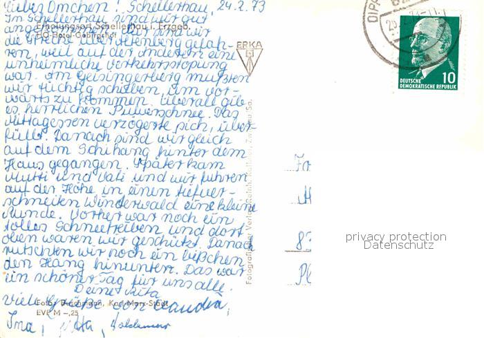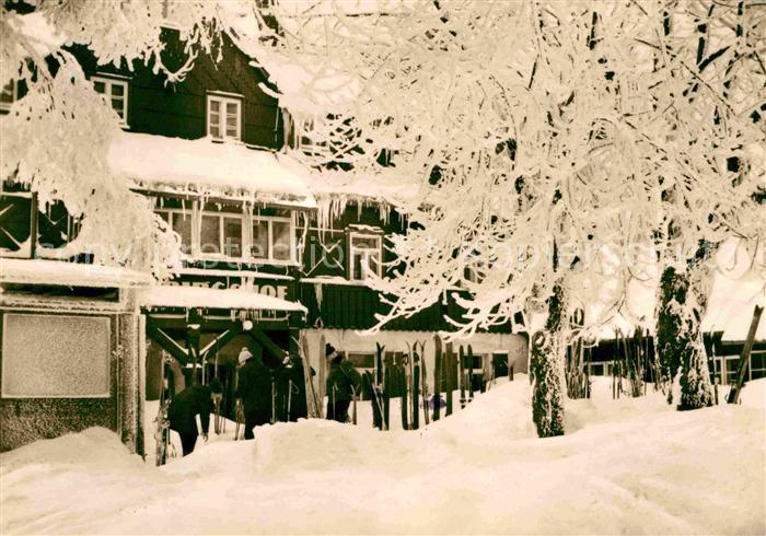 72632480 alte Postkarte Schellerhau HO Hotel Gebirgshof im Winter Skifahrer postalisch gelaufen Erhaltung siehe scans [FriedD77] KatCode: 11110014290010