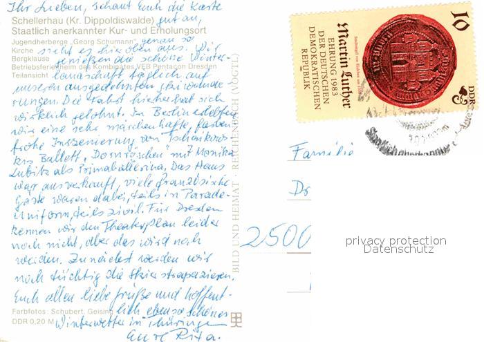 72851866 alte Postkarte Schellerhau Jugendherberge Georg Schumann Kirche Bergklause postalisch gelaufen Erhaltung siehe scans [AndreD76] KatCode: 11110014290010