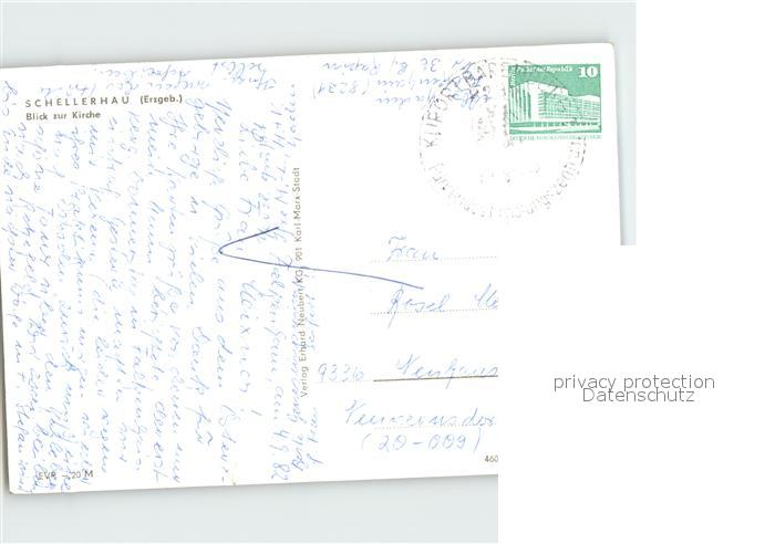 72384139 alte Postkarte Schellerhau Kirche postalisch gelaufen Erhaltung siehe scans KatCode: 11110014290010