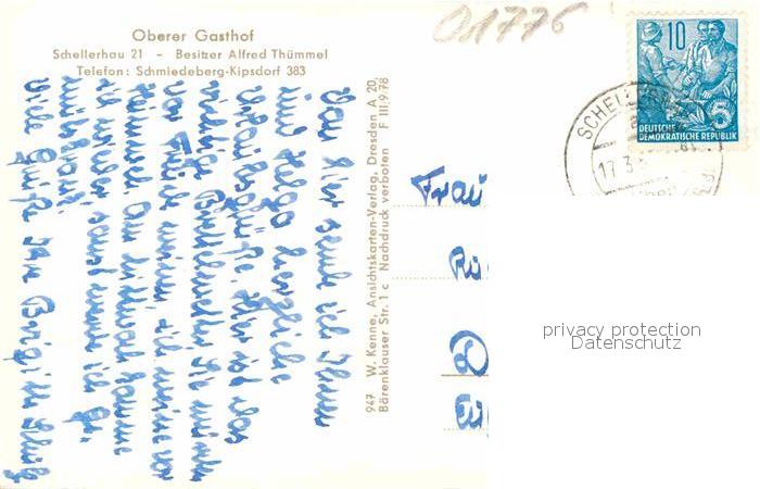 72642852 alte Postkarte Schellerhau Oberer Gasthof postalisch gelaufen Erhaltung siehe scans [AndreD76] KatCode: 11110014290010