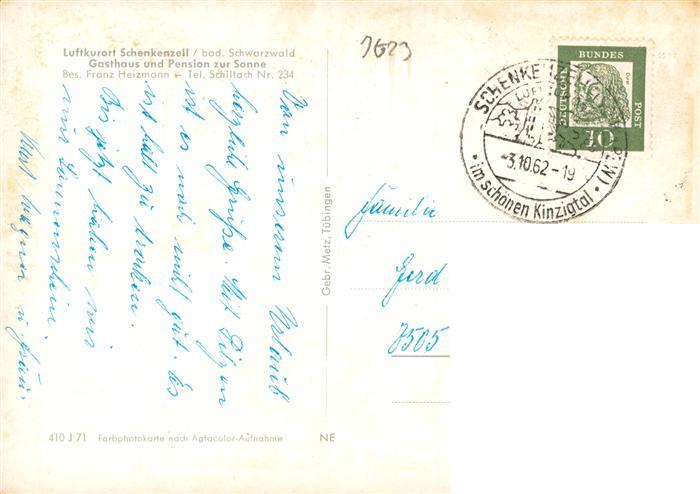 73930429 alte Postkarte Schenkenzell Gasthaus Pension zur Sonne Fachwerkhaus Luftkurort im Schwarzwald postalisch gelaufen Erhaltung siehe scans [FriedD77] KatCode: 11110008325050