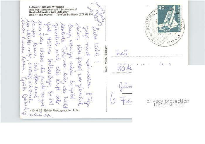 alte Postkarte Schenkenzell Kloster Wittichen Gasthof Pension zum Kloster postalisch gelaufen Erhaltung siehe scans