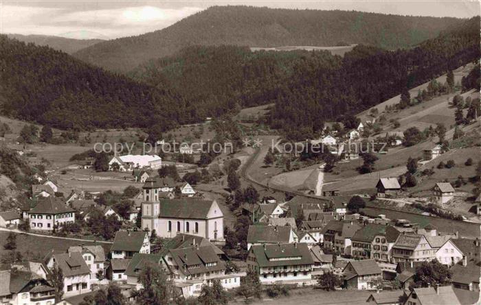 74095063 alte Postkarte Schenkenzell Panorama Schwarzwald Ortsansicht mit Kirche postalisch gelaufen Erhaltung siehe scans [FriedD77] KatCode: 11110008325050