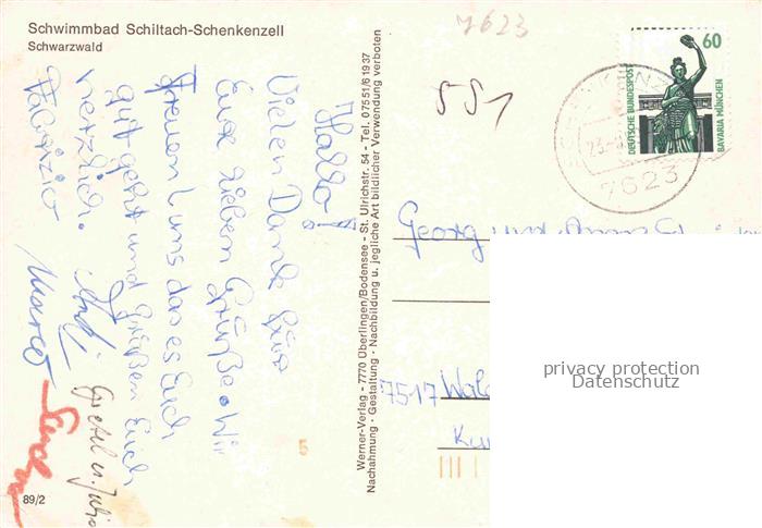 74044794 alte Postkarte Schenkenzell Schwimmbad postalisch gelaufen Erhaltung siehe scans [WerneD78] KatCode: 11110008325050